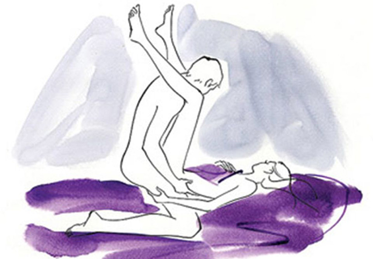 Đầu tiên nàng nằm ngửa, giơ hai chân lên cao và gác lên vai chàng. Sau đó chàng quỳ xuống, đưa tay ôm lấy phần hông của nàng để nhấc cơ thể nàng lên.